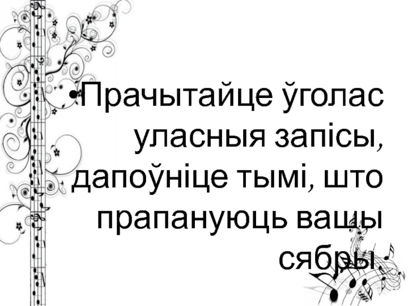 Слайд 5Прачытайце ўголас уласныя запісы, дапоўніце тымі, што прапануюць вашы сябры.