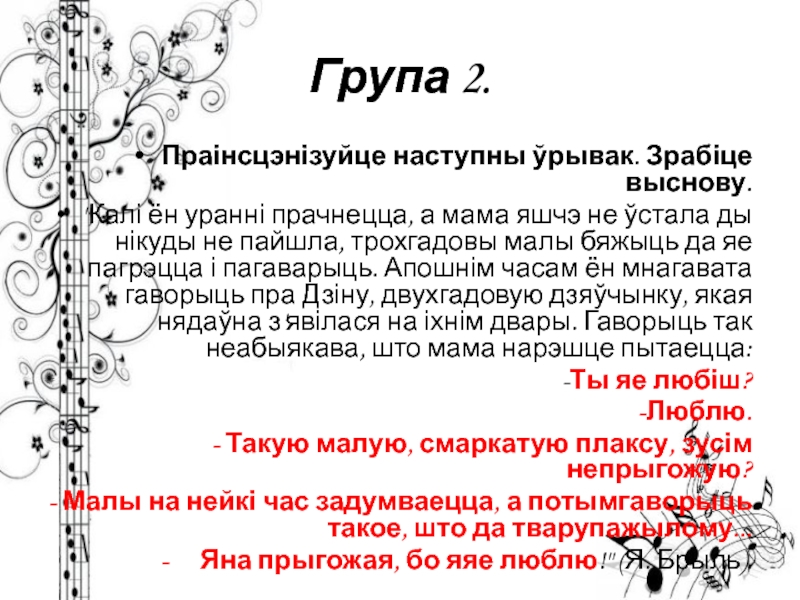 Праінсцэнізуйце наступны ўрывак. Зрабіце выснову.