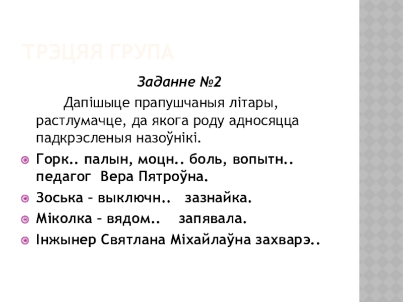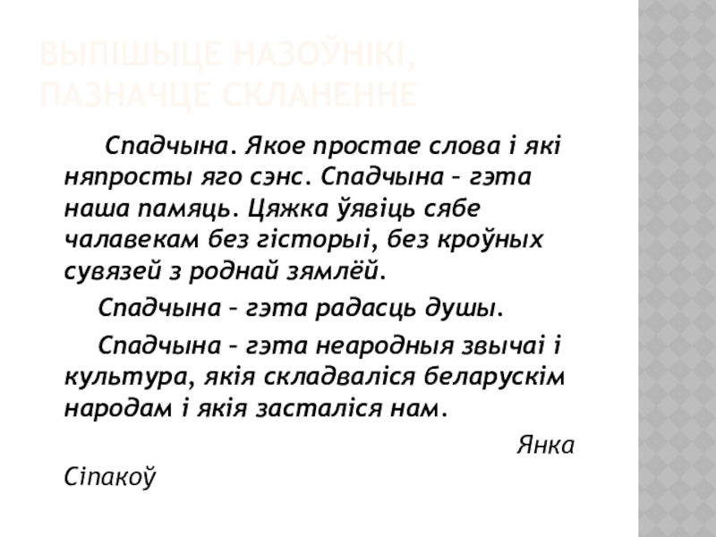 Слайд 26Выпішыце назоўнікі, пазначце скланенне