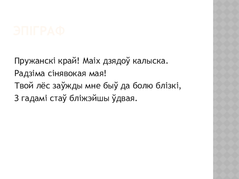 і які няпросты яго сэнс. Спадчына – гэта наша памяць. Цяжка ўявіць сябе чалавекам без гісторыі, без кроўных сувязей з роднай зямлёй.
