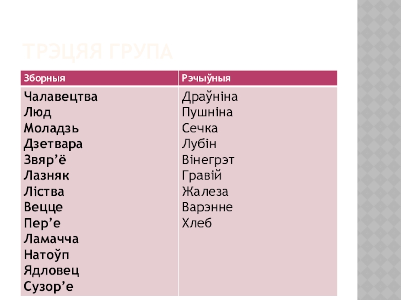 правільна адбіраць назоўнікі пэўных тэматычных груп,выкарыстоўваючы іх сінанімічныя, антанімічныя, стылістычныя і экспрэсіўныя магчымасці для раскрыцця тэмы і асноўнай думкі ва ўласных выказваннях;