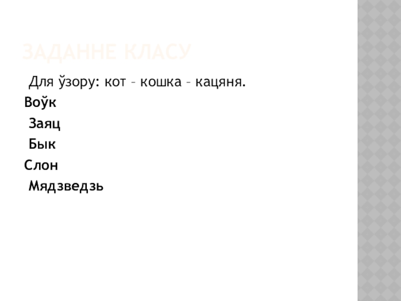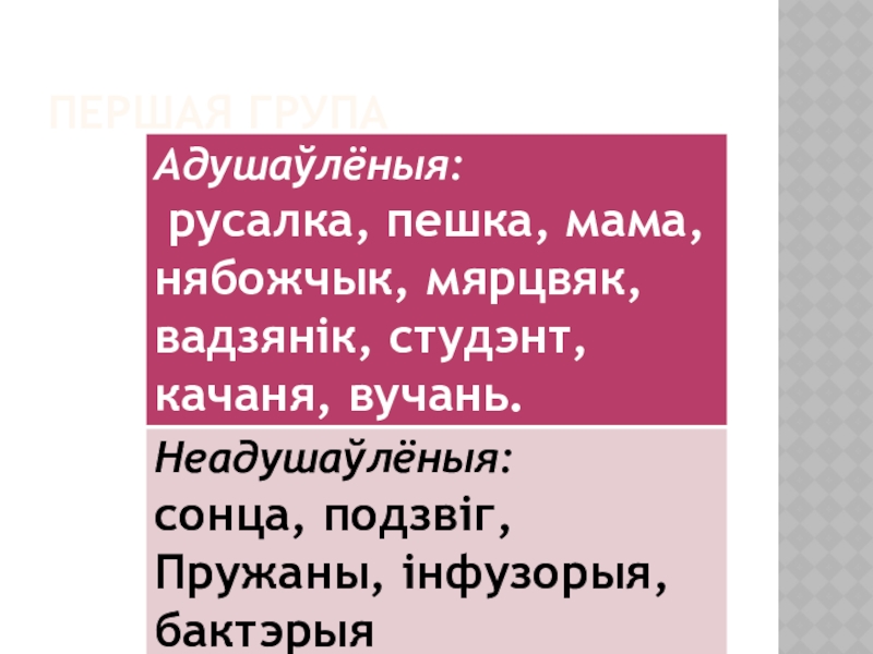 подзвіг, подзвіг, Пружаны, русалка, пешка, нябожчык, мярцвяк, інфузорыя, бактэрыя, вадзянік, студэнт, качаня, вучань.