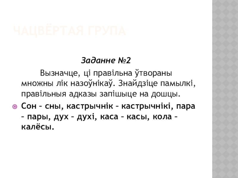 множны лік назоўнікаў. Знайдзіце памылкі, правільныя адказы запішыце на дошцы.
