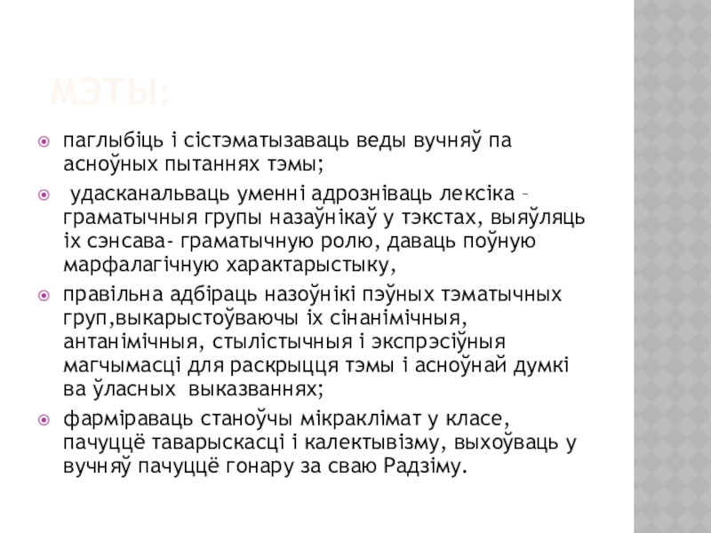 паглыбіць і сістэматызаваць веды вучняў па асноўных пытаннях тэмы;
