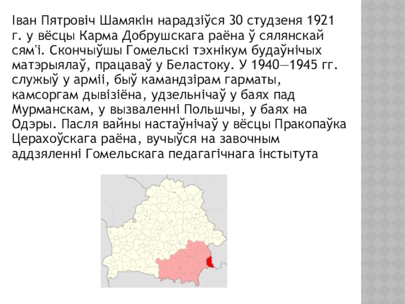 Слайд 2Іван Пятровіч Шамякін нарадзіўся 30 студзеня 1921 г. у вёсцы Карма
