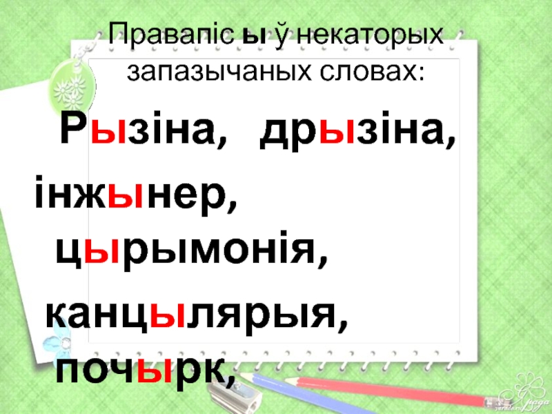 Слайд 26Правапіс ы ў некаторых запазычаных словах: