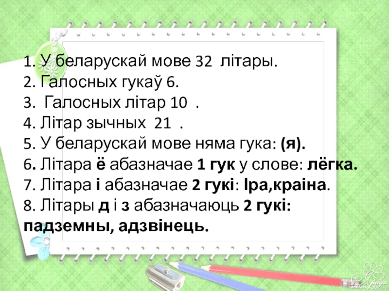 Слайд 41. У беларускай мове 32 літары.