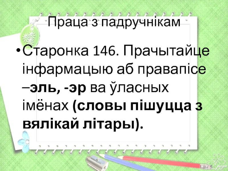 Старонка 146. Прачытайце інфармацыю аб правапісе –эль, -эр ва