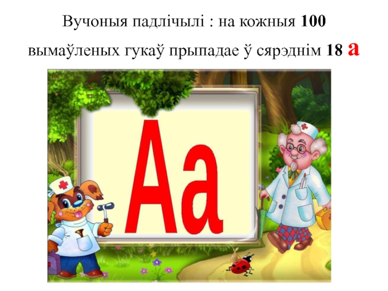 Слайд 7Вучоныя падлічылі : на кожныя 100 вымаўленых гукаў прыпадае ў сярэднім