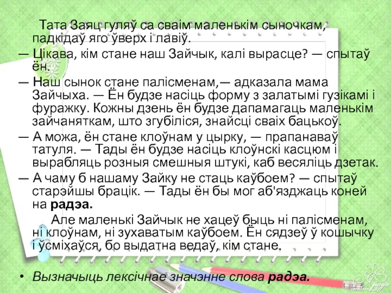 Слайд 27 Тата Заяц гуляў са сваім маленькім сыночкам,