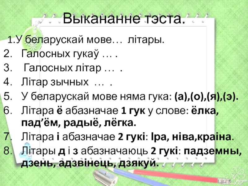 Слайд 3Выкананне тэста.