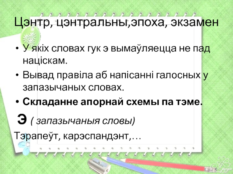 Слайд 17Цэнтр, цэнтральны,эпоха, экзамен