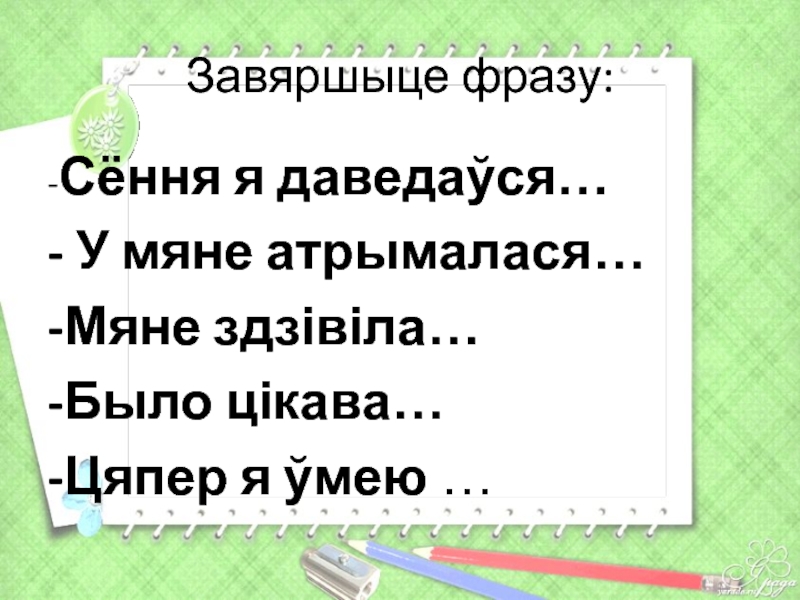 Слайд 28Завяршыце фразу: