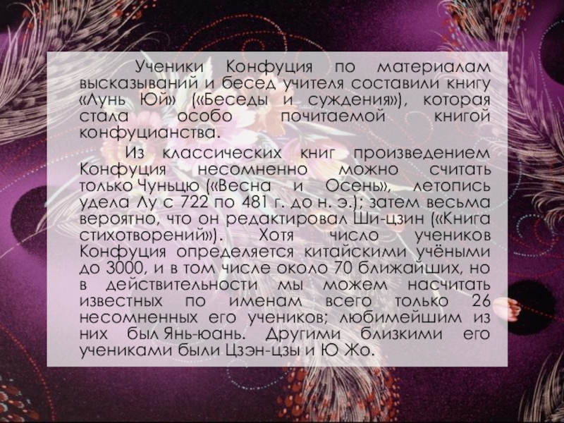 Слайд 6 Ученики Конфуция по материалам высказываний и бесед учителя составили
