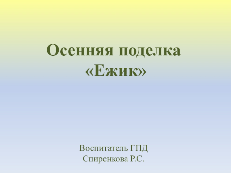 Презентация, доклад на тему Презентиция на тему Осенняя поделка ёжик