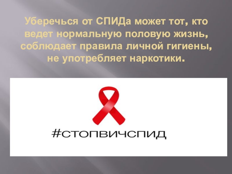 Слайд 19Уберечься от СПИДа может тот, кто ведет нормальную половую жизнь, соблюдает