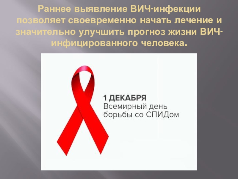 Слайд 20Раннее выявление ВИЧ-инфекции позволяет своевременно начать лечение и значительно улучшить прогноз