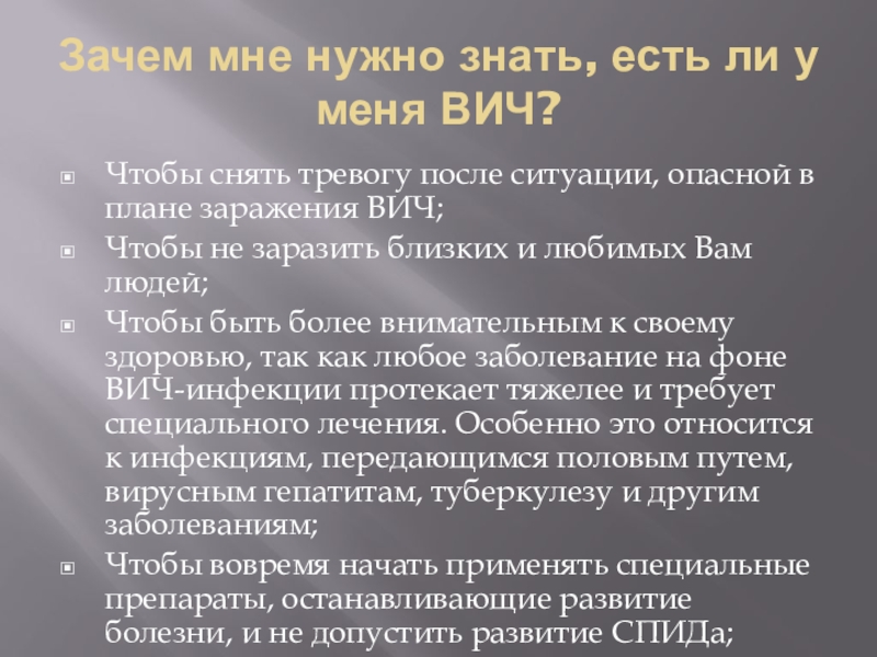 Слайд 17Зачем мне нужно знать, есть ли у меня ВИЧ?
