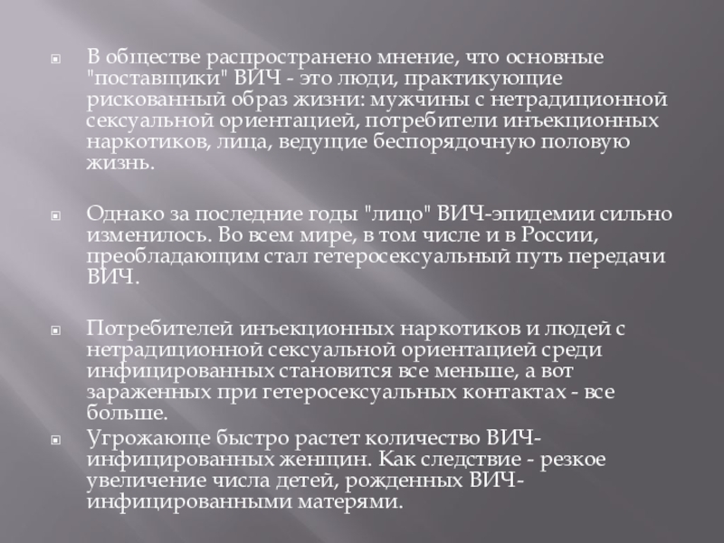 Слайд 9В обществе распространено мнение, что основные "поставщики" ВИЧ - это люди,