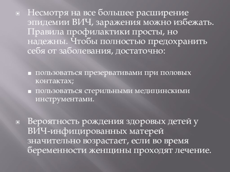 Слайд 14Несмотря на все большее расширение эпидемии ВИЧ, заражения можно избежать. Правила
