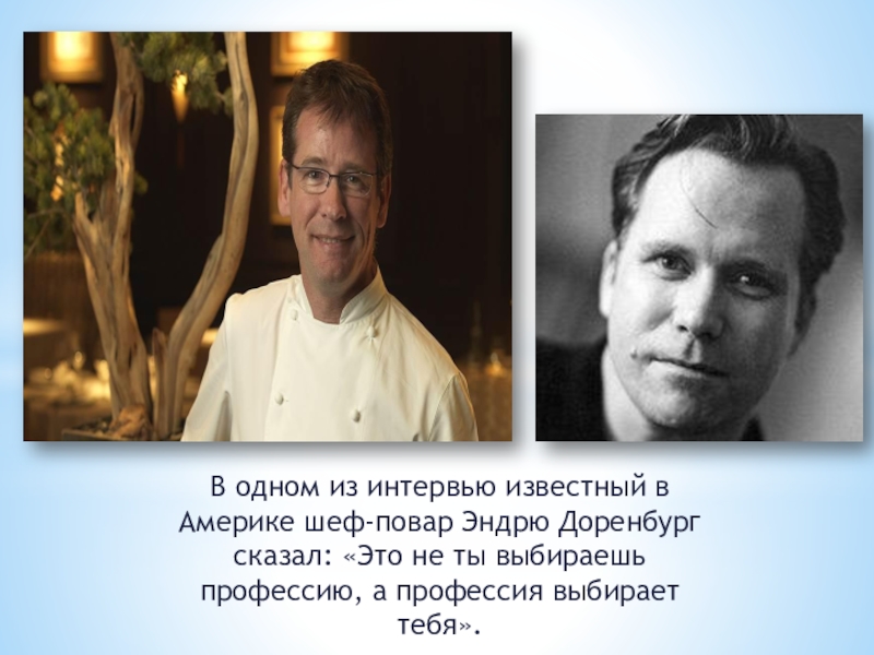 Слайд 17В одном из интервью известный в Америке шеф-повар Эндрю Доренбург сказал: