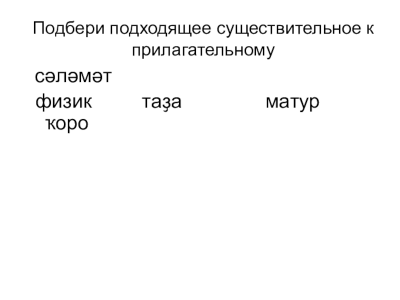 Подбери подходящее существительное к прилагательному сәләмәт физик     таҙа