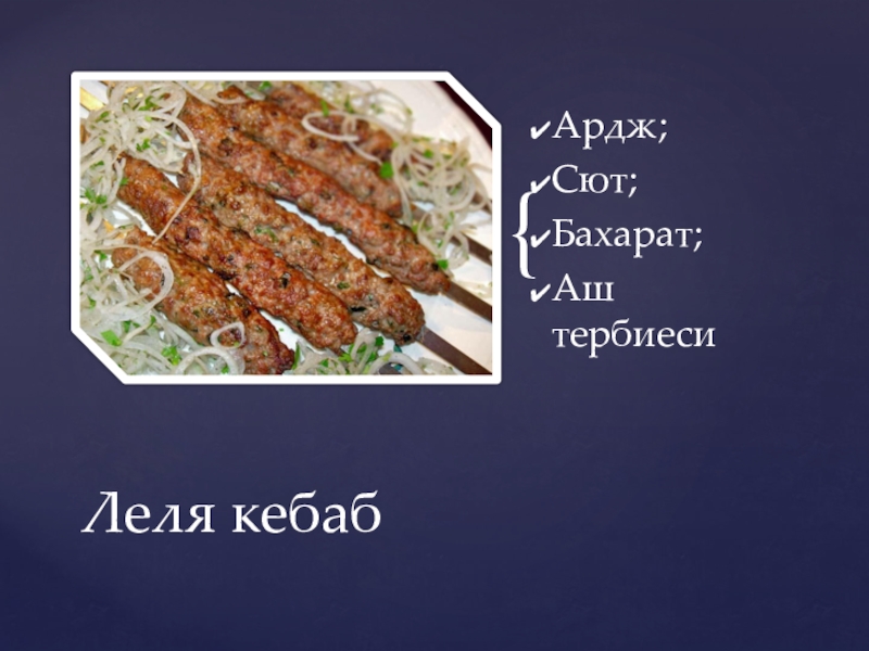Ардж;Сют;Бахарат;Аш тербиесиЛеля кебаб