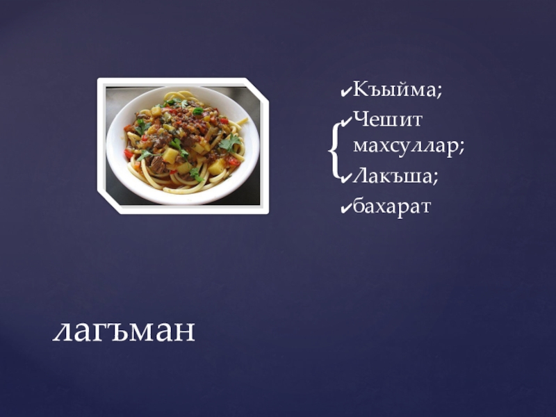 Къыйма;Чешит махсуллар;Лакъша;бахаратлагъман