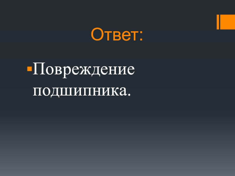 Ответ:Повреждение подшипника.