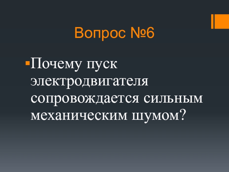 Вопрос №6Почему пуск электродвигателя сопровождается сильным механическим шумом?