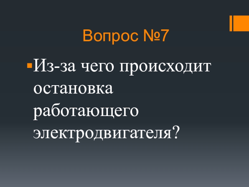 Вопрос №7Из-за чего происходит остановка работающего электродвигателя?