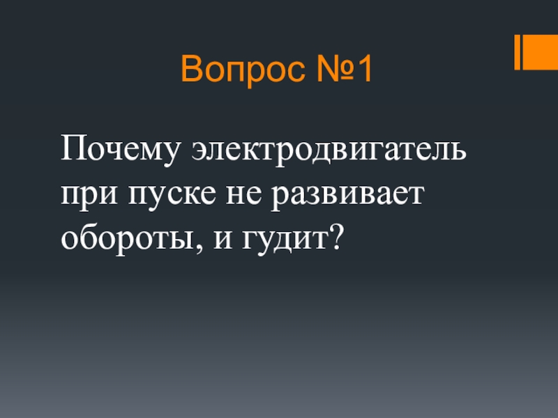 Вопрос №1Почему электродвигатель при пуске не развивает обороты, и гудит?