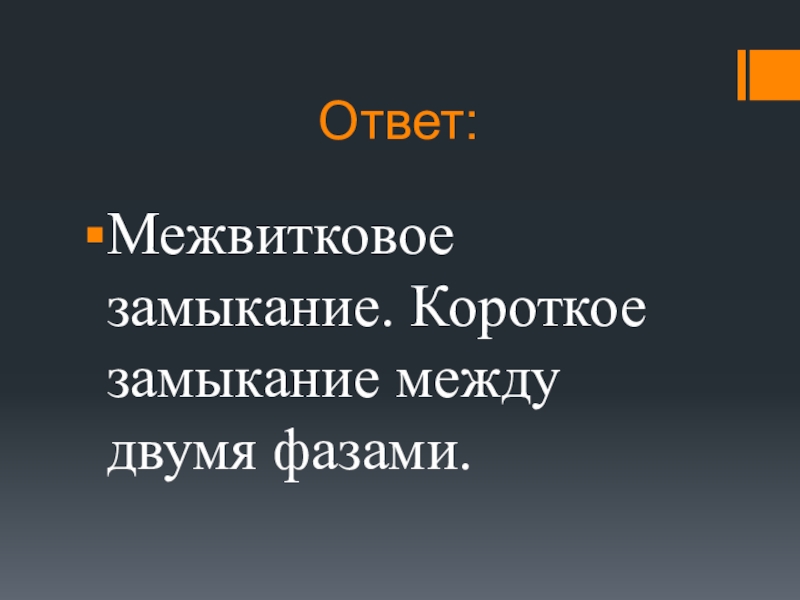 Ответ:Межвитковое замыкание. Короткое замыкание между двумя фазами.