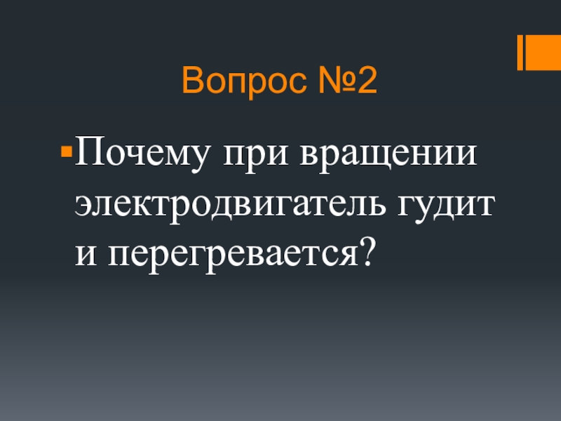Вопрос №2Почему при вращении электродвигатель гудит и перегревается?