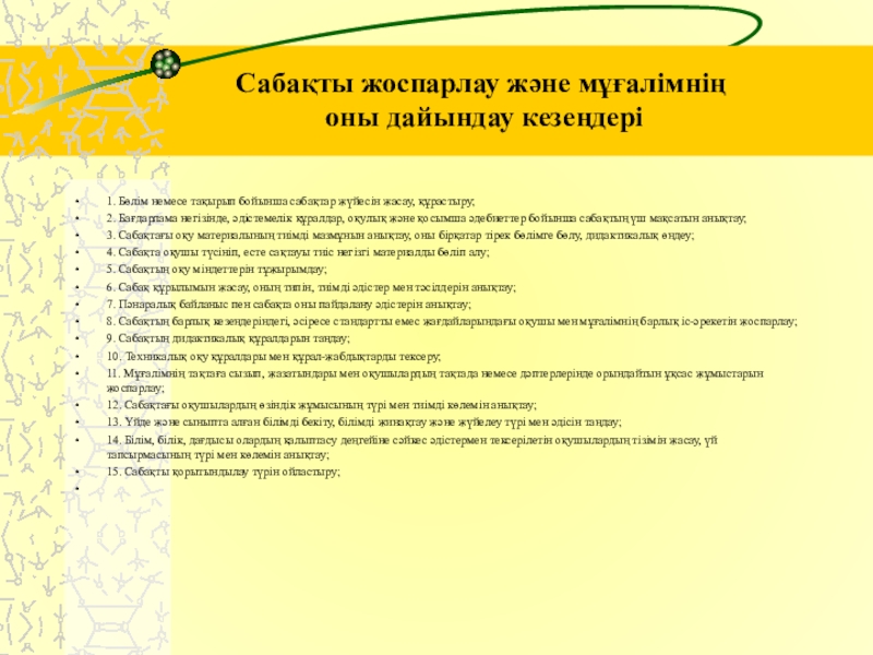 Слайд 11Сабақты жоспарлау және мұғалімнің