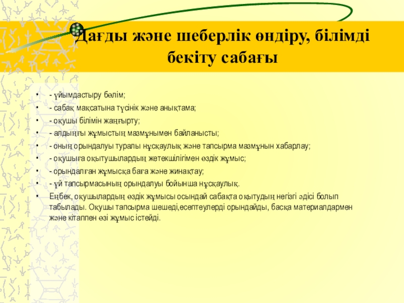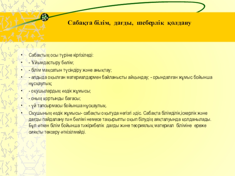 Слайд 14Сабақта білім, дағды, шеберлік қолдану