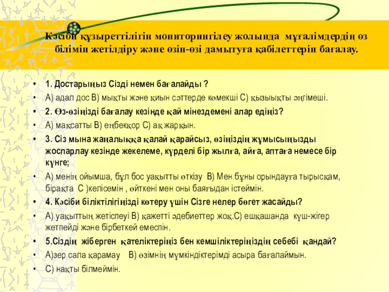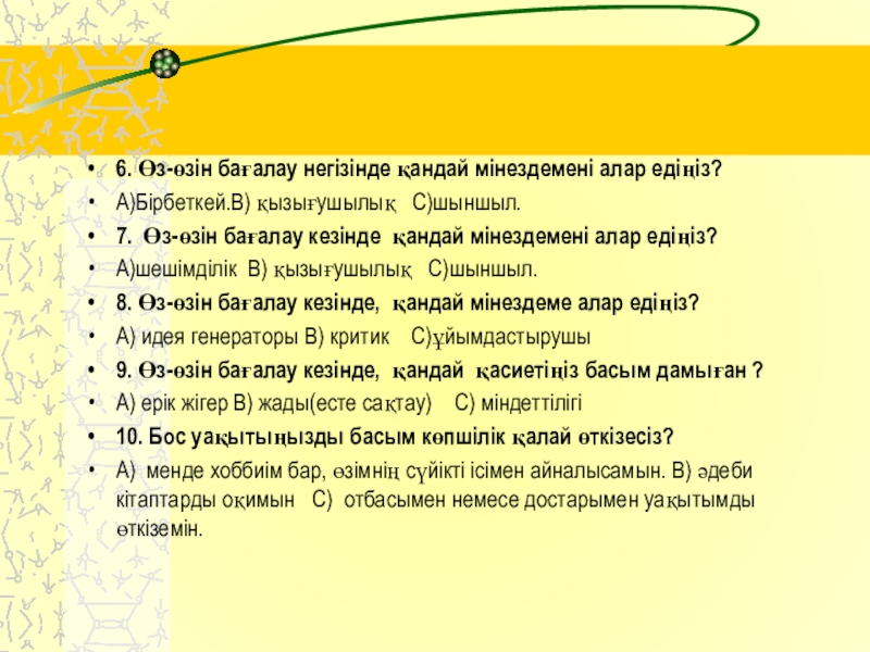 Слайд 246. Өз-өзін бағалау негізінде қандай мінездемені алар едіңіз?
