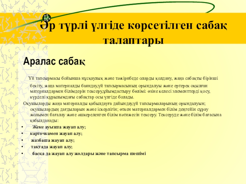 Әр түрлі үлгіде көрсетілген сабақ талаптары