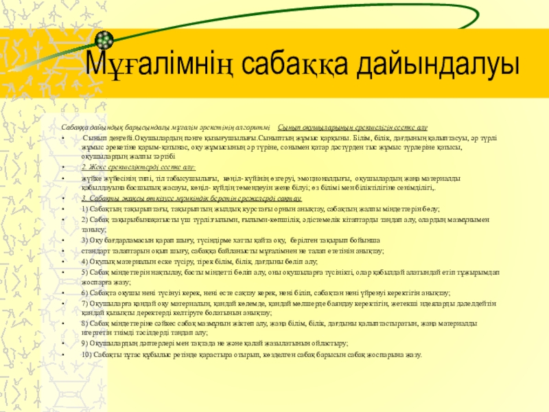 Слайд 10Мұғалімнің сабаққа дайындалуы