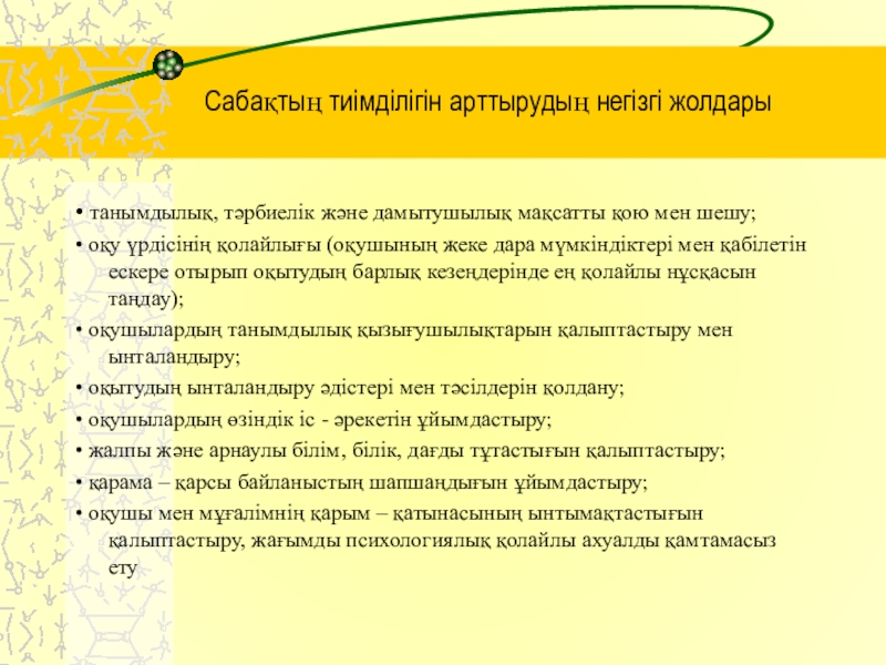 Слайд 20Сабақтың тиімділігін арттырудың негізгі жолдары