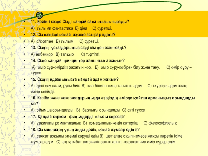 Слайд 2511. Кейінгі кезде Сізді қандай сала қызықтырады?