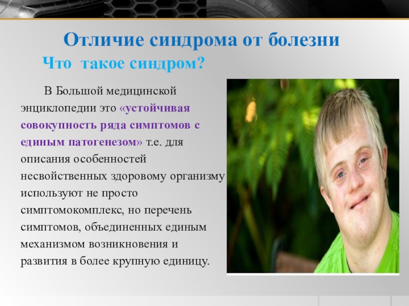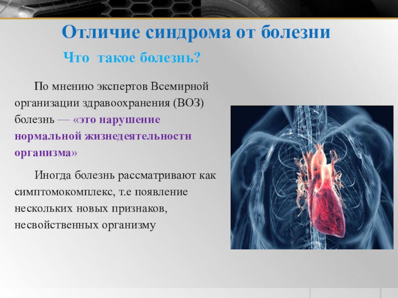 Слайд 10Отличие синдрома от болезни