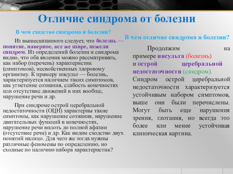 Слайд 13Отличие синдрома от болезни