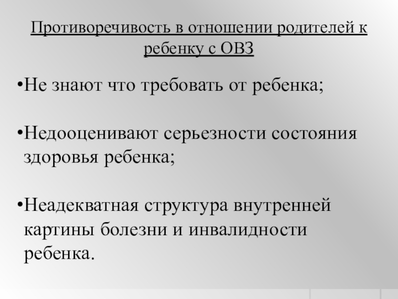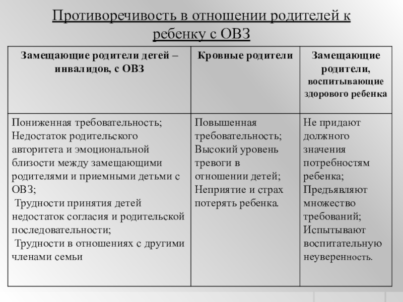 Слайд 42Противоречивость в отношении родителей к ребенку с ОВЗ