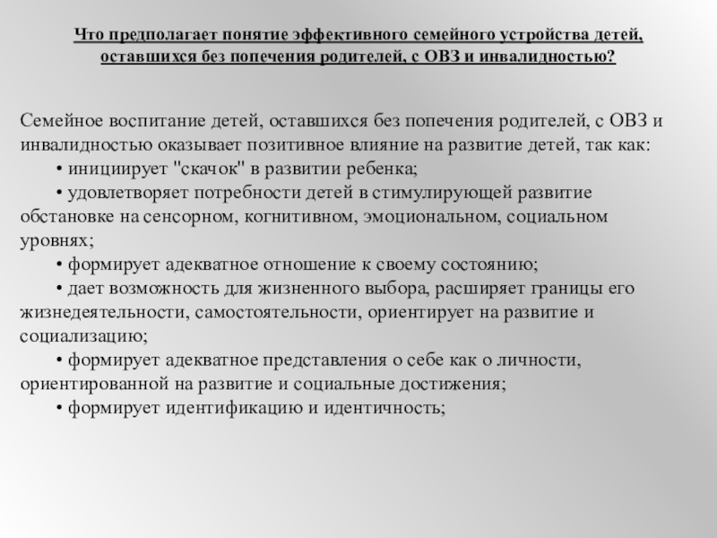 Что предполагает понятие эффективного семейного устройства детей, оставшихся без попечения родителей, с ОВЗ и инвалидностью?