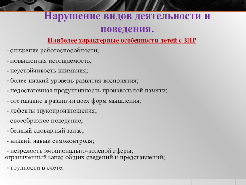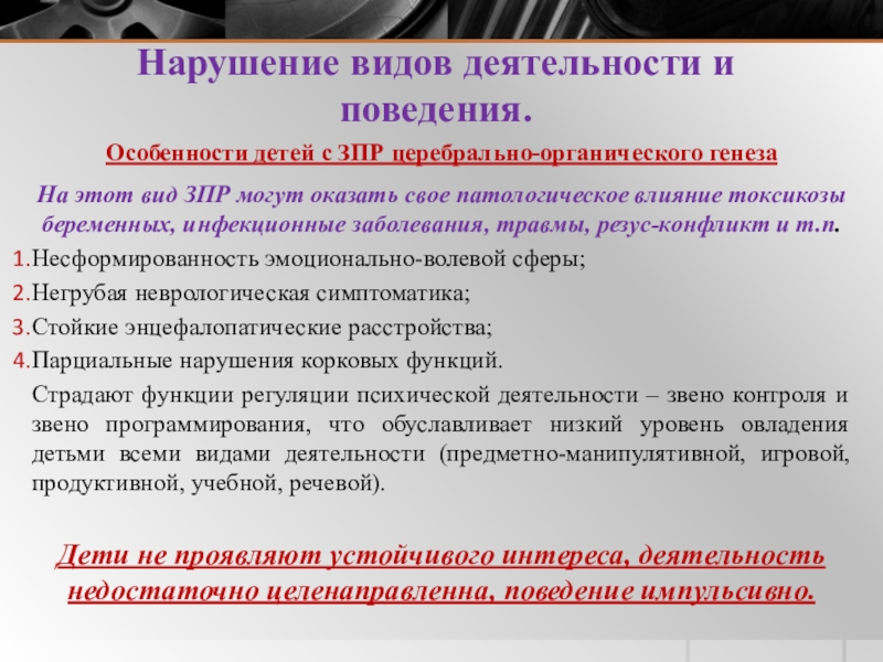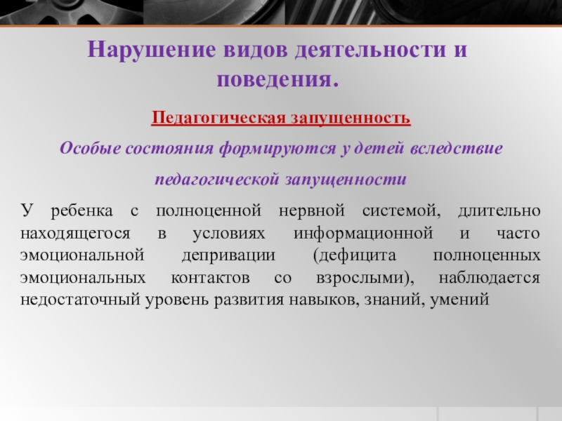 3. Нарушение видов деятельности и поведения.