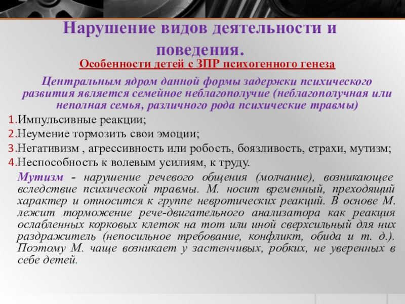 б)наличие невротических расстройств, обусловленных психотравмирующими ситуациями, в результате чего ребенок может бояться общения из-за страха повторных психических травм;