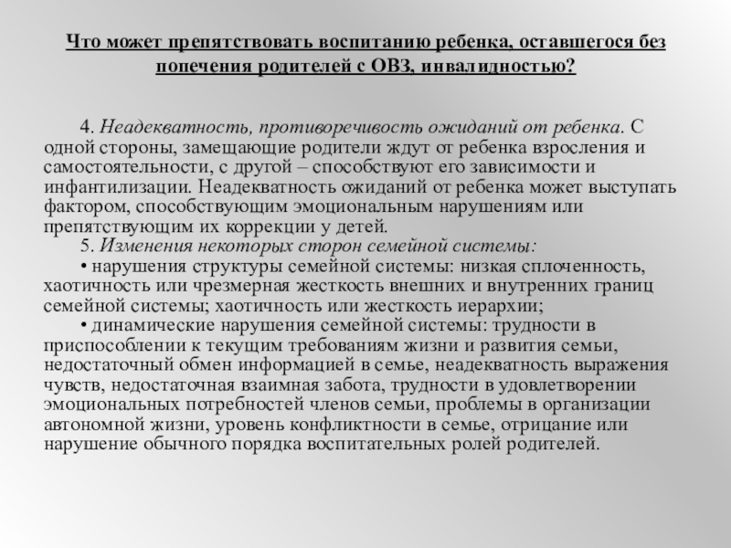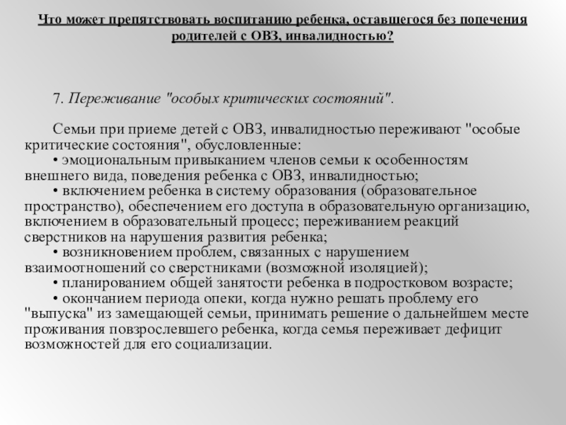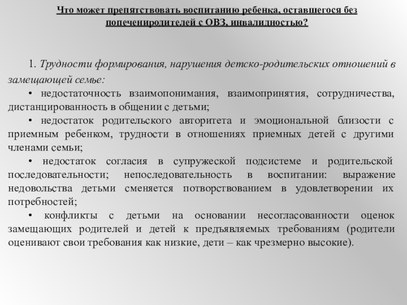 Что может препятствовать воспитанию ребенка, оставшегося без попечения родителей с ОВЗ, инвалидностью?