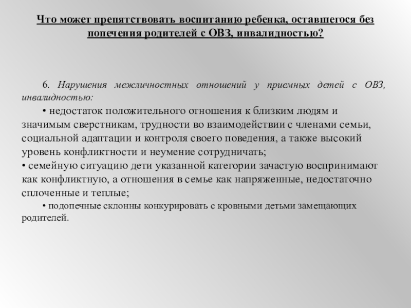 6. Нарушения межличностных отношений у приемных детей с ОВЗ, инвалидностью: