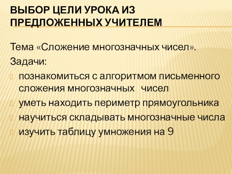 На первом этапе учитель обозначает цели урока, на более высоком уровне тему урока формулируют дети.